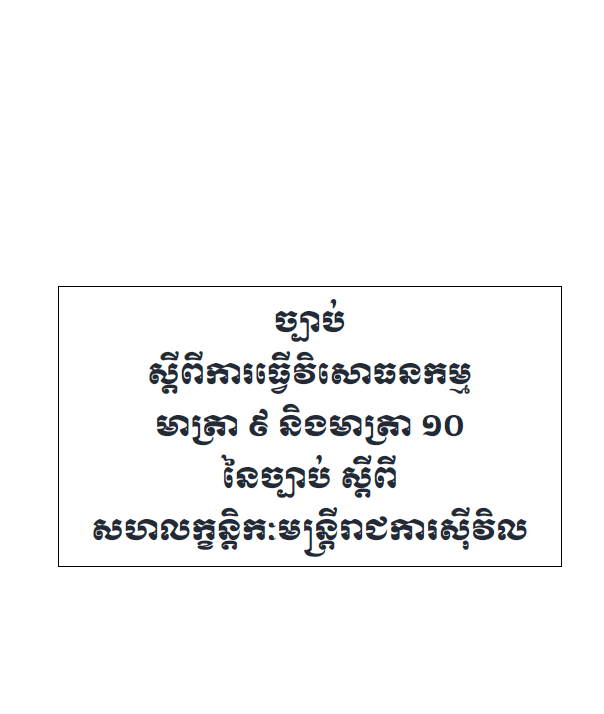 ការធ្វើវិសោធនកម្មមាត្រា ៩ និងមាត្រា ១០ នៃច្បាប់ស្តីពីសហលក្ខន្តិកៈមន្ត្រីរាជការស៊ីវិល